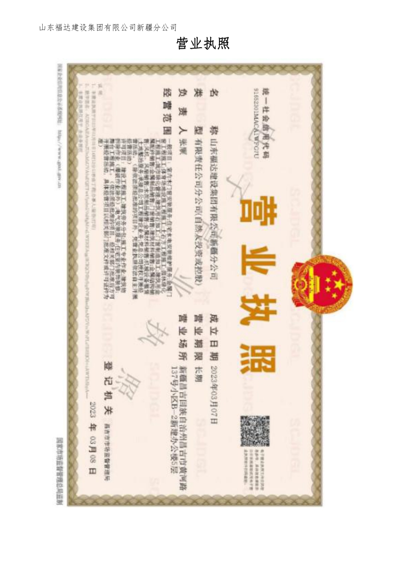 Shandong Fuda Construction Group Co., Ltd. Xinjiang Branch